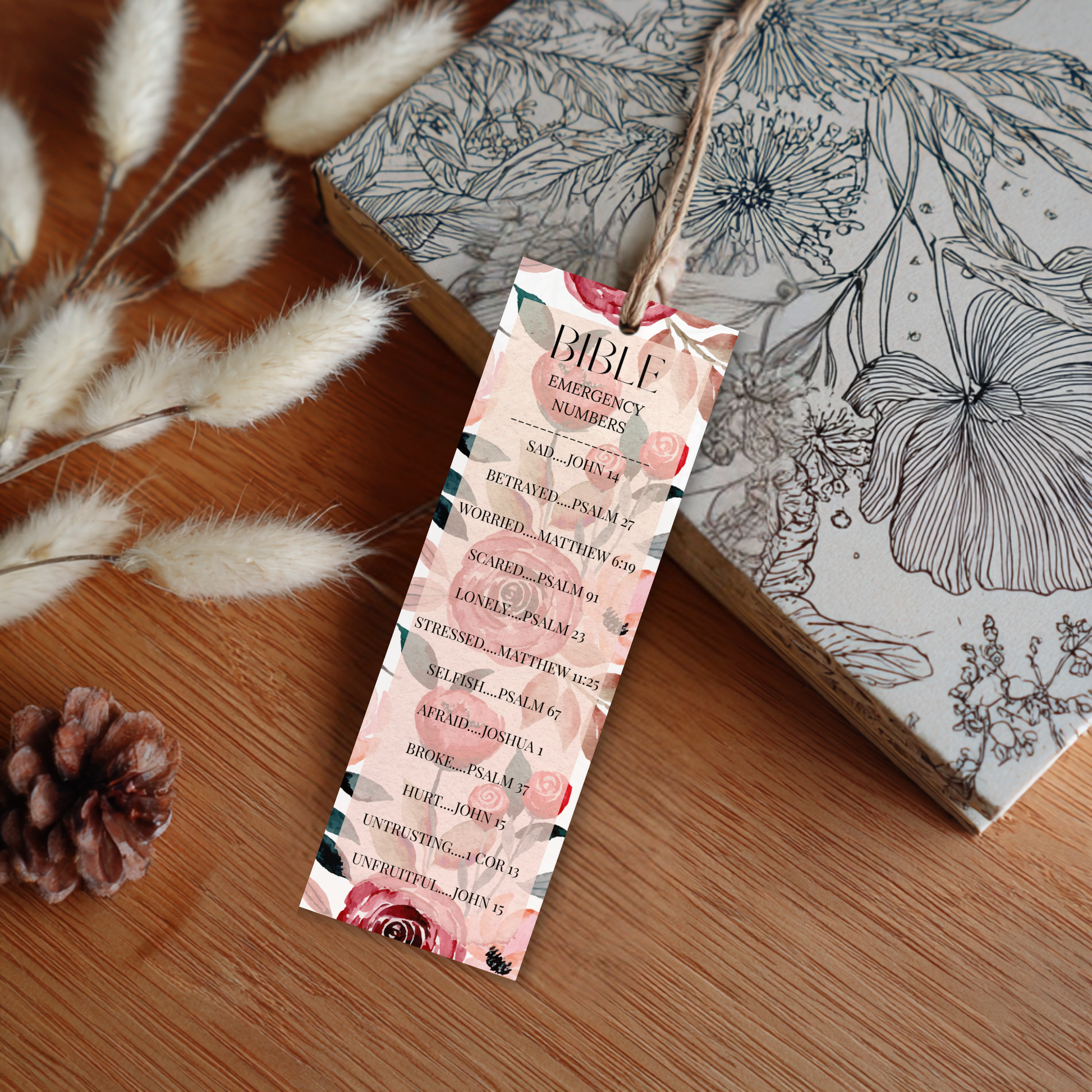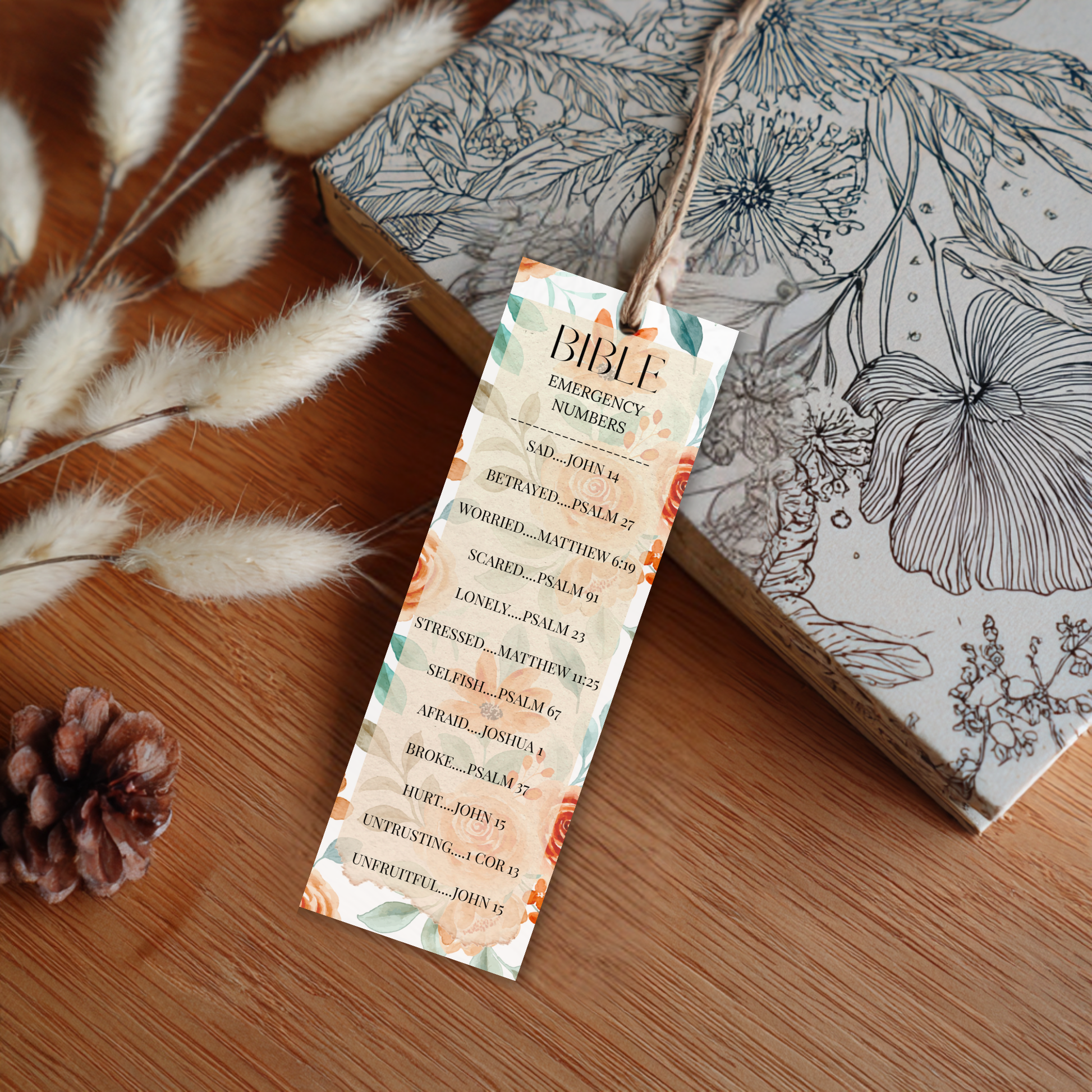 Bible Emergency Numbers Hand-Drawn Bookmark | Laminated Scripture Bookmark