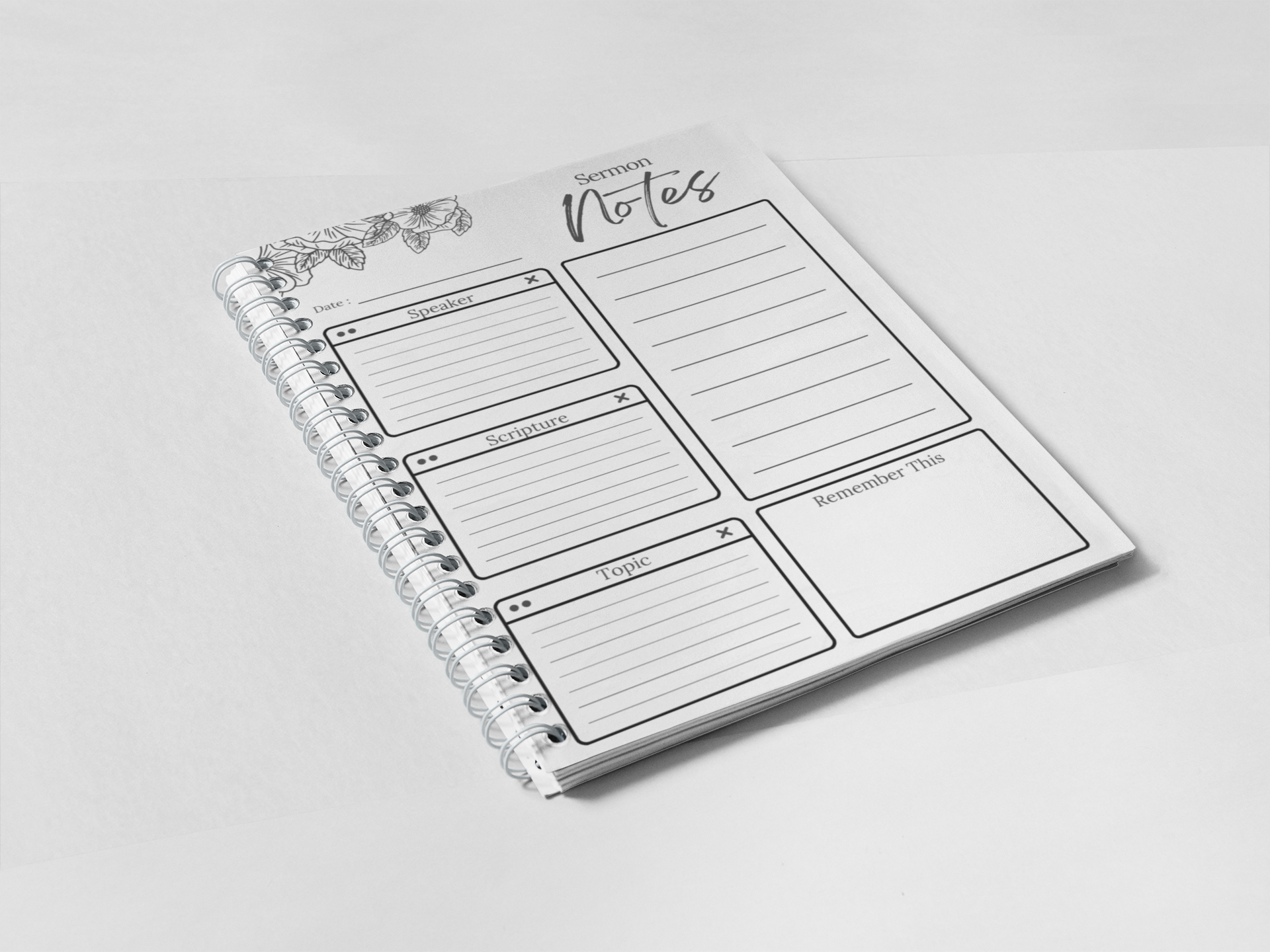 ✨ Sermon Notes Spiral Notebook – 8.5” x 11” Christian Journal by Prickly Petal Boutique