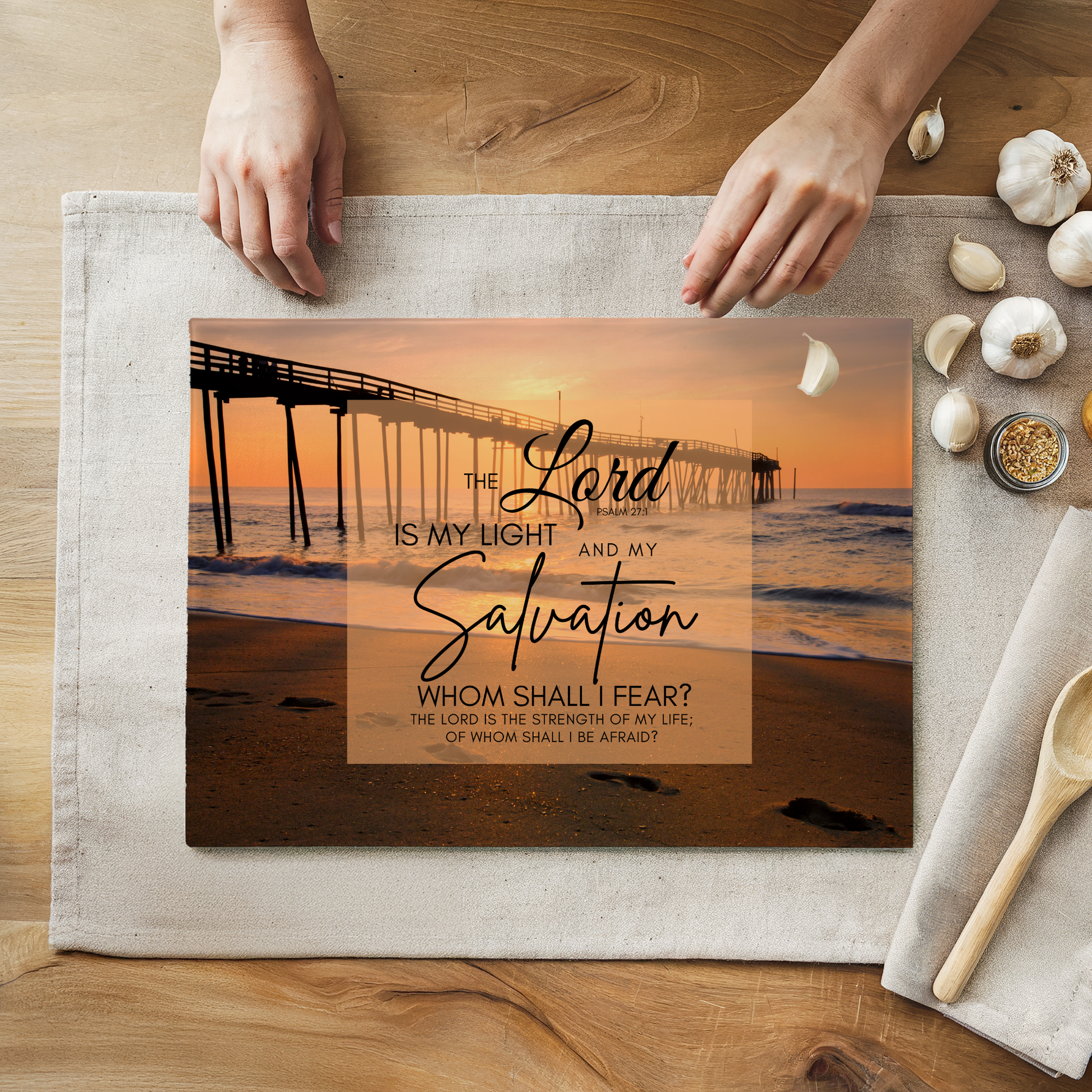 “The Lord Is My Light & Salvation” Glass Cutting Board | 8” x 11” Tempered Glass | North Topsail Beach, NC Coastal Design